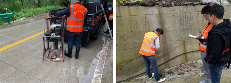 我公司于2018年11月16日召開檢測工作會,擬定驗(yàn)收前檢測工作方案并對驗(yàn)收工作進(jìn)行全面安排,并于2018年11月19日組織實(shí)施檢測。檢測小組按規(guī)定項(xiàng)目及抽檢頻率對該工程進(jìn)行了現(xiàn)場檢測。經(jīng)檢測,天全縣藏魚路(藏魚橋至魚泉鄉(xiāng))四級公路路面改造工程項(xiàng)目除外觀質(zhì)量缺陷外其余檢測指標(biāo)基本滿足《公路工程質(zhì)量檢驗(yàn)評定標(biāo)準(zhǔn)》(JTG F80/1-2004)合格標(biāo)準(zhǔn)。