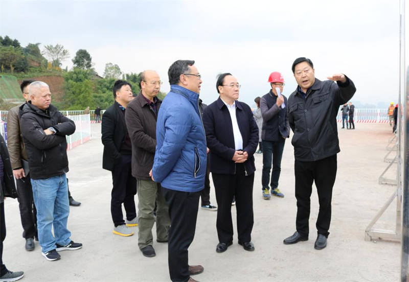 在雨名快速通道項目控制性工程金雞關(guān)山頂,徐立認真聽取了項目建設有關(guān)情況的匯報,詳細了解了項目投資 完成情況,重點關(guān)注了雅安交通建設大發(fā)展的思路和取得的成績。徐立一行對項目建設工作給予充分肯定,對雅安市通過交通大發(fā)展推動東進融入拓展城市發(fā)展新空間的舉措表示贊賞!