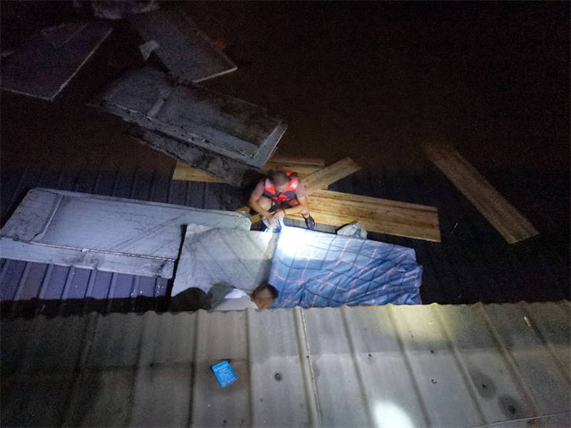 “感謝3名值班人員及時打電話通知我,否則后果不堪設(shè)想。”簡敬奎說,回想起昨晚的情形,心里還是有些后怕。當時,他接到值班人員電話后,發(fā)現(xiàn)門衛(wèi)室外的洪水已經(jīng)逼近脖子,無法順利撤離,洪水漲勢又快,不一會兒,他只得爬上門衛(wèi)室頂端才能避免被水淹沒。后來,洪水沖來了一棵樹,簡敬奎借助這棵樹慢慢轉(zhuǎn)移到了附近一棵較高大的樹上繼續(xù)躲避,直至黃志和方華軍前來營救。