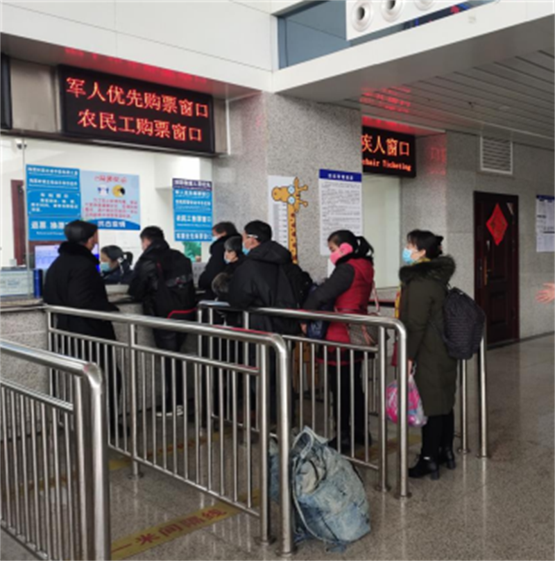 二是設立專門購票窗口。設立專門的農(nóng)民工購票窗口,安排車站工作人員在售票窗口引導和幫助農(nóng)民工朋友使用“微信購票”、“自助售票機購票”、“電子客票”等便捷綠色功能購票乘車。