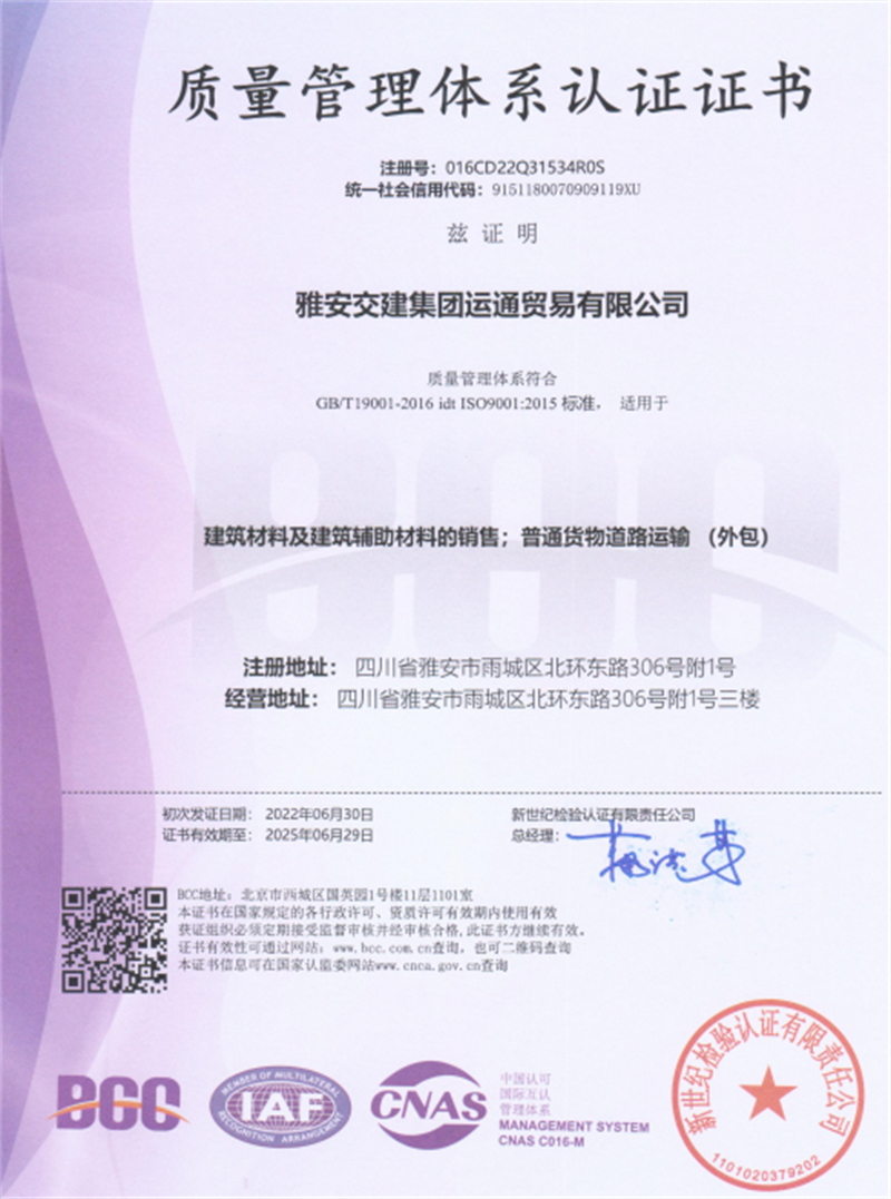 近日,經(jīng)專業(yè)認(rèn)證機(jī)構(gòu)嚴(yán)格審核,運(yùn)通公司順利通過(guò)GB/T19001-2016 idt ISO9001:2015質(zhì)量管理體系標(biāo)準(zhǔn)認(rèn)證。
