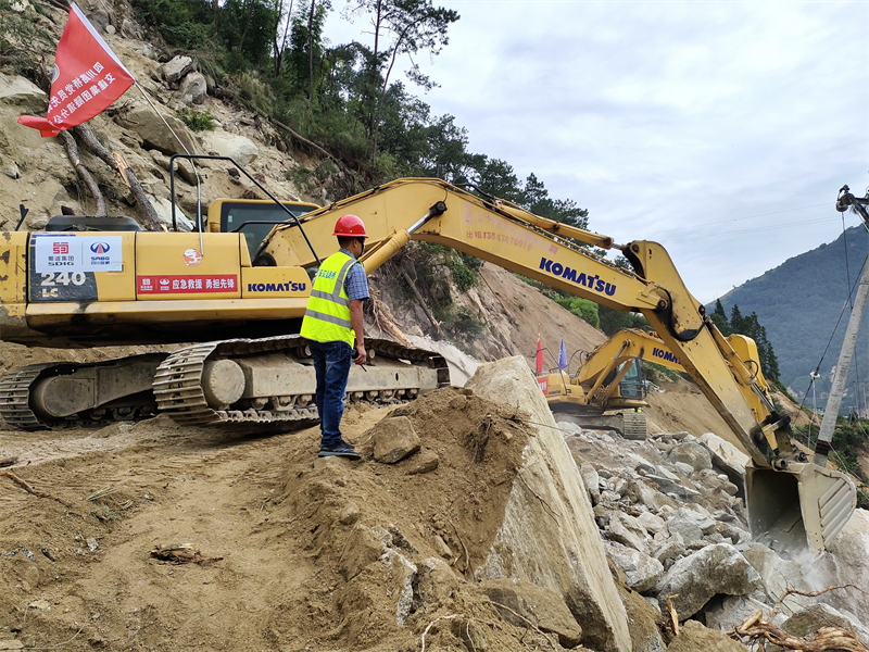 災(zāi)情就是命令,時(shí)間就是生命!交建集團(tuán)聞令而動(dòng),集團(tuán)黨委迅速啟動(dòng)應(yīng)急響應(yīng)機(jī)制,路橋公司火速調(diào)集石棉108線項(xiàng)目人員機(jī)具,第一時(shí)間馳援搶通一線;發(fā)出倡議,動(dòng)員黨員干部增補(bǔ)力量,全力投身?yè)屚ū橙蝿?wù)。在山崩地裂、亂石嶙峋間穿插著一抹挺身而出的“交建藍(lán)”“黨員紅”。