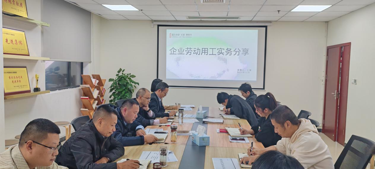 為進(jìn)一步加強(qiáng)勞動(dòng)用工實(shí)務(wù)操作,提高解決勞動(dòng)爭(zhēng)議的能力和技巧,10月31日,項(xiàng)管公司邀請(qǐng)成都國(guó)浩律師事務(wù)所王慧律師開展了勞動(dòng)用工實(shí)務(wù)培訓(xùn)活動(dòng),公司領(lǐng)導(dǎo)班子、中層及相關(guān)經(jīng)辦人員約20人參加培訓(xùn)。