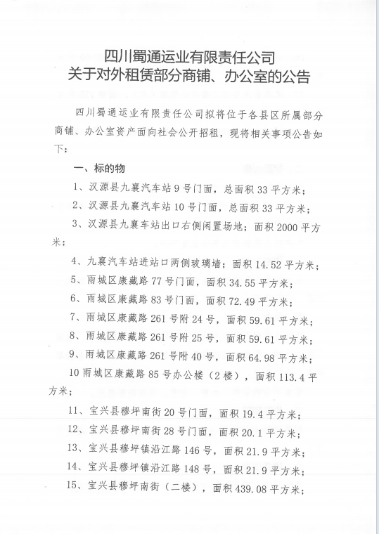 ËÄ´¨Êñͨß\(y¨´n)˜I(y¨¨)ÓÐÏÞØŸ(z¨¦)Èι«Ë¾êP(gu¨¡n)ÓÚŒ¦(du¨¬)Íâ×âÙU²¿·ÖéT(m¨¦n)Ãæ¡¢Þk¹«ÊÒÙY®a(ch¨£n)µÄ¹«¸æ¸½¼þ