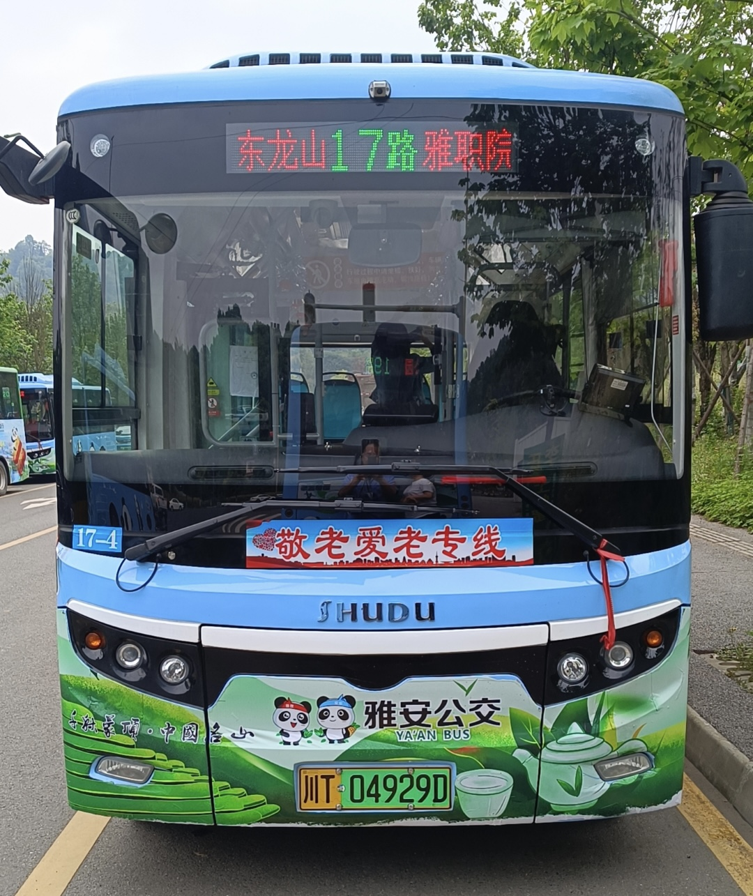 17路示范線為雅州快線,主要連接雨城區(qū)河南片區(qū)至名山區(qū),沿線途經(jīng)醫(yī)院、公園、商場等老年人日常生活、就醫(yī)、娛樂等場所,在車身上張貼敬老愛老線路標(biāo)貼,在車廂內(nèi)張貼公益廣告、放置便民服務(wù)箱,營造了濃厚的敬老、愛老、助老的良好氛圍。