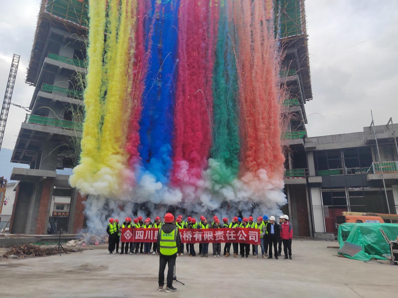 寶興縣靈關(guān)客運(yùn)中心暨綜合停車場建設(shè)項(xiàng)目建筑面積約為1萬平方米,配套用房建筑高度約50米,地下1層,地上11層。自2024年3月開工以來,路橋公司始終堅(jiān)持“施工方案先行,安全質(zhì)量齊舉,精心精細(xì)施工”的管理原則,踐行“無揚(yáng)塵、無污染、無擾民、低噪音、無環(huán)保投訴”的綠色安全施工理念,調(diào)集優(yōu)質(zhì)資源,搶抓施工進(jìn)度。最終,在項(xiàng)目全員的共同努力奮斗下,順利完成了寶興縣靈關(guān)客運(yùn)中心暨綜合停車場建設(shè)項(xiàng)目主體結(jié)構(gòu)施工節(jié)點(diǎn),喜封金頂。