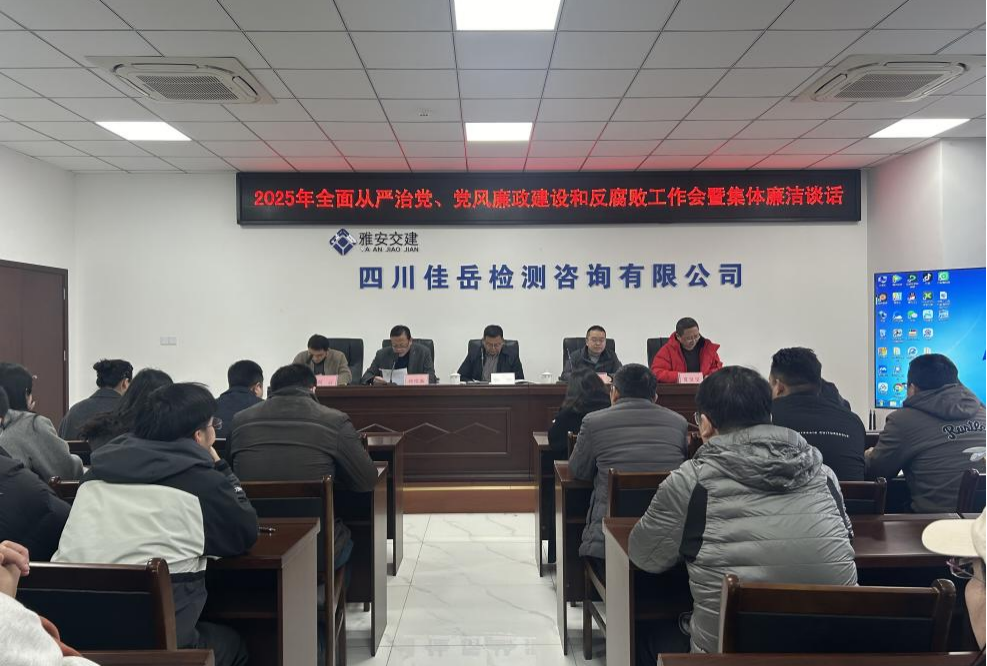 3月20日,四川佳岳檢測咨詢有限公司召開2025年全面從嚴治黨、黨風(fēng)廉政建設(shè)和反腐敗工作會暨集體廉潔談話,集團黨委專職副書記張萬清、總工程師程學(xué)強參加會議并提相關(guān)要求。