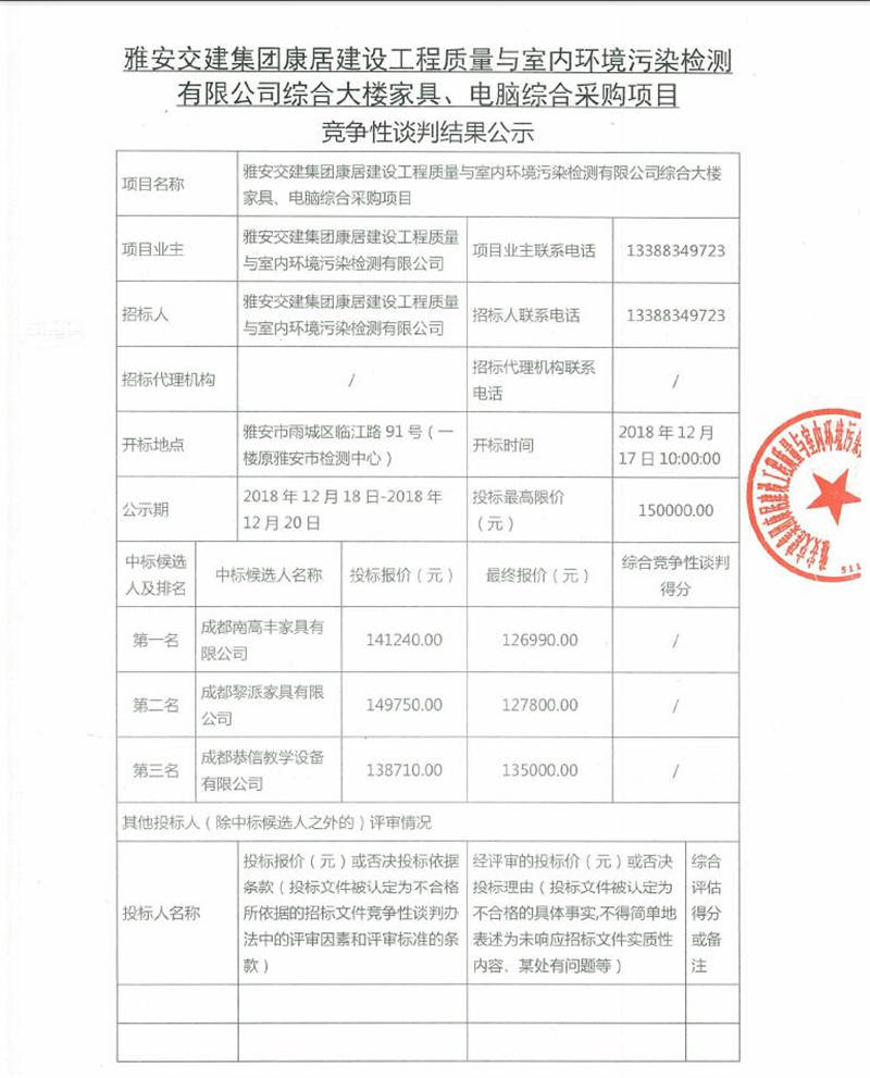 綜合大樓家具、電腦綜合采購(gòu)項(xiàng)目競(jìng)爭(zhēng)性談判結(jié)果公示