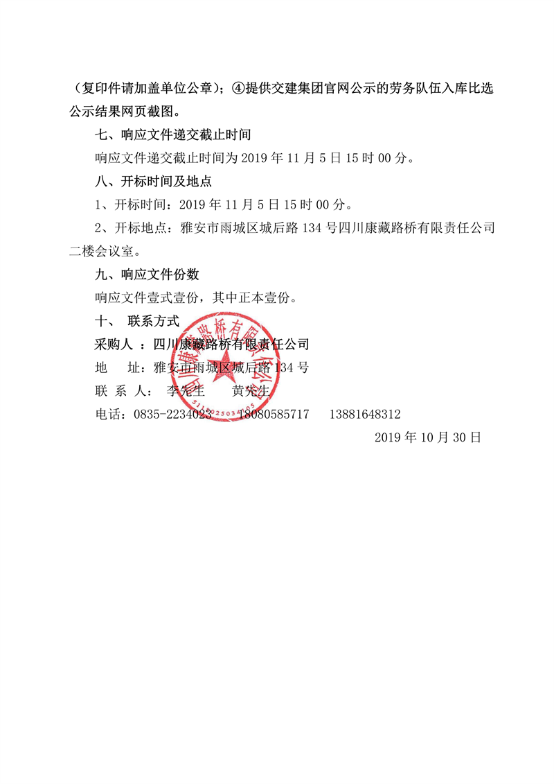 四川康藏路橋有限責(zé)任公司省道104線草壩至姚橋段改建工程項目擋墻(第一階段)施工勞務(wù)競價公告