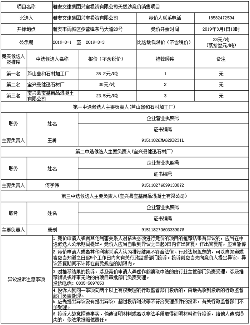 雅安交建集團(tuán)興寶投資有限公司天然沙競(jìng)價(jià)銷(xiāo)售項(xiàng)目公示