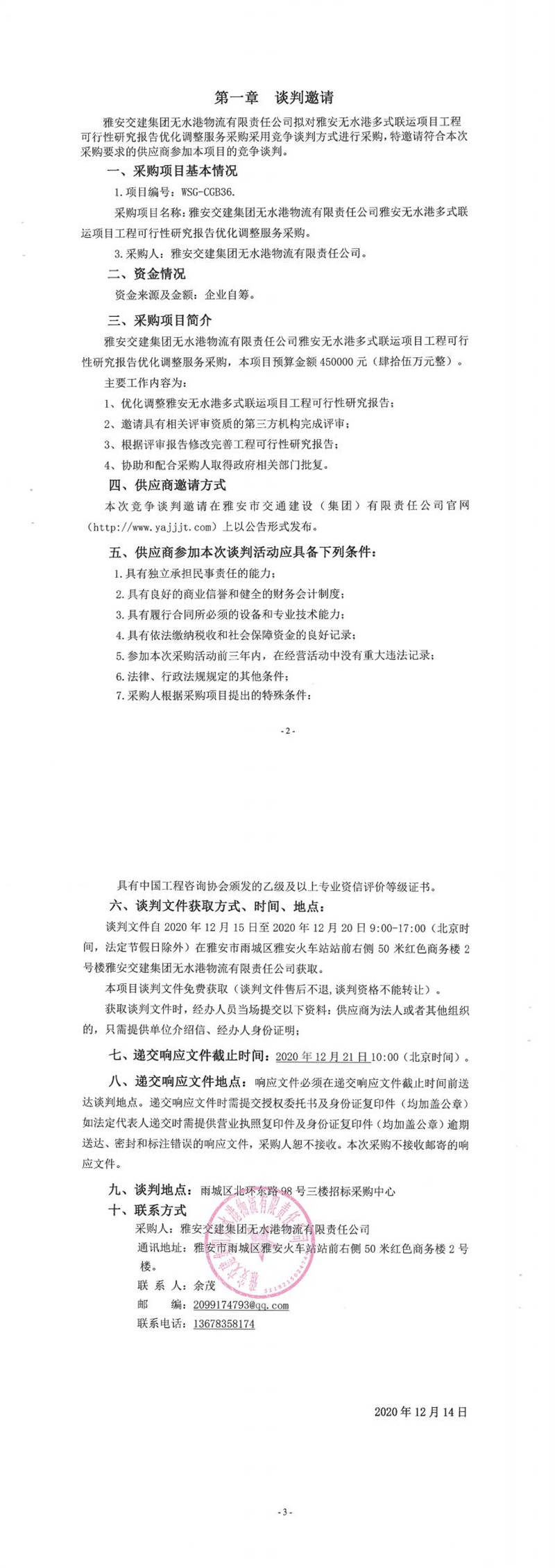 雅安交建集團(tuán)無水港物流有限責(zé)任公司雅安無水港多式聯(lián)運(yùn)項(xiàng)目工程可行性研究報(bào)告優(yōu)化調(diào)整服務(wù)采購競(jìng)爭(zhēng)談判公告