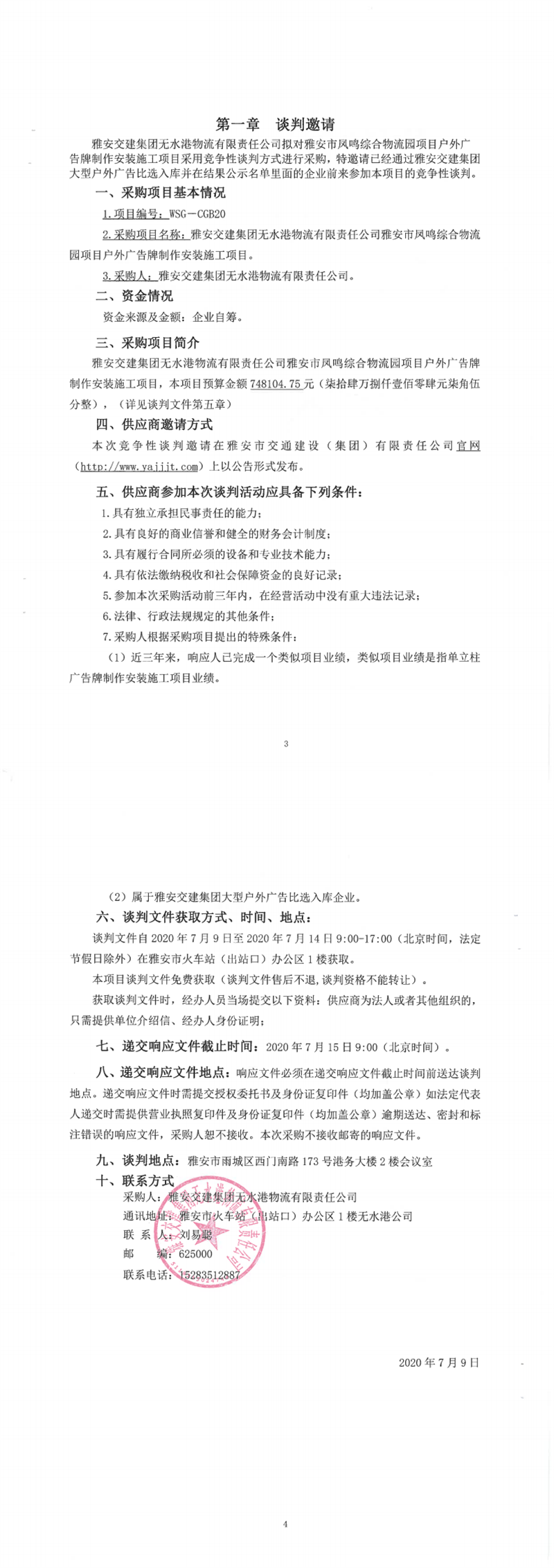 雅安交建集團(tuán)無(wú)水港物流有限責(zé)任公司雅安市鳳鳴綜合物流園項(xiàng)目戶外廣告牌制作安裝施工項(xiàng)目競(jìng)爭(zhēng)性談判公告