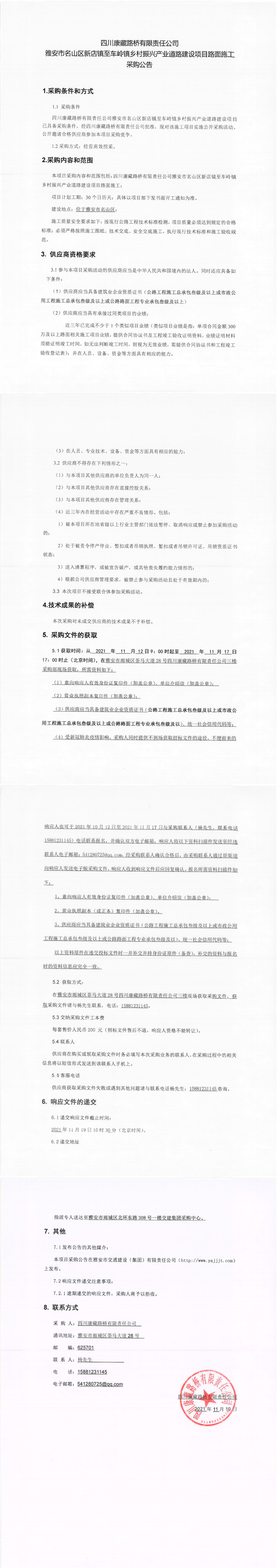 四川康藏路橋有限責(zé)任公司雅安市名山區(qū)新店鎮(zhèn)至車嶺鎮(zhèn)鄉(xiāng)村振興產(chǎn)業(yè)道路建設(shè)項(xiàng)目路面施工采購(gòu)公告