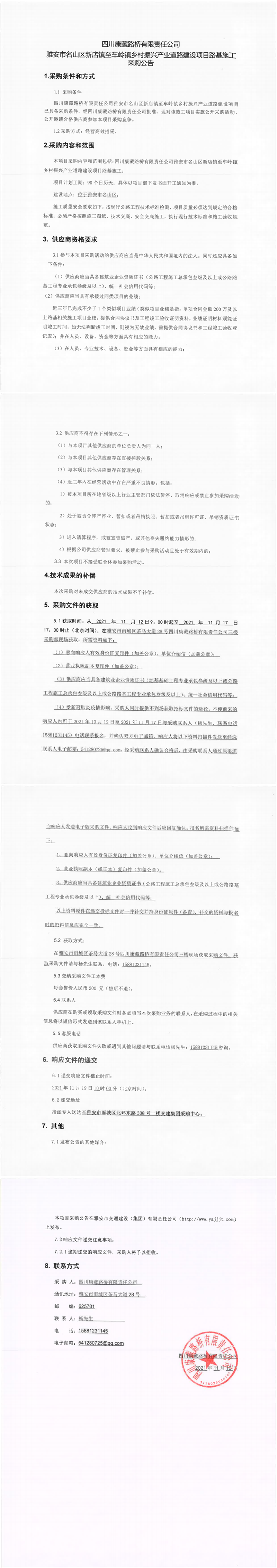 四川康藏路橋有限責(zé)任公司雅安市名山區(qū)新店鎮(zhèn)至車嶺鎮(zhèn)鄉(xiāng)村振興產(chǎn)業(yè)道路建設(shè)項(xiàng)目路面施工采購公告