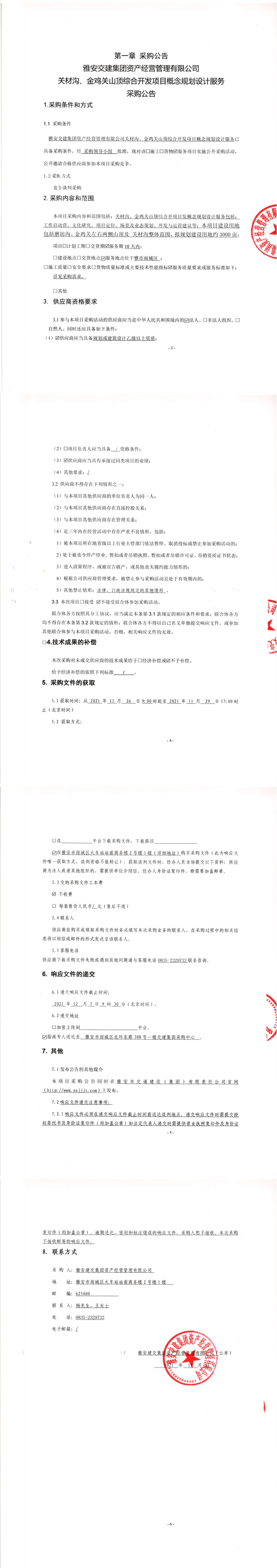雅安交建集團資產經營管理有限公司關材溝、金雞關山頂綜合開發(fā)項目概念規(guī)劃設計服務采購公告