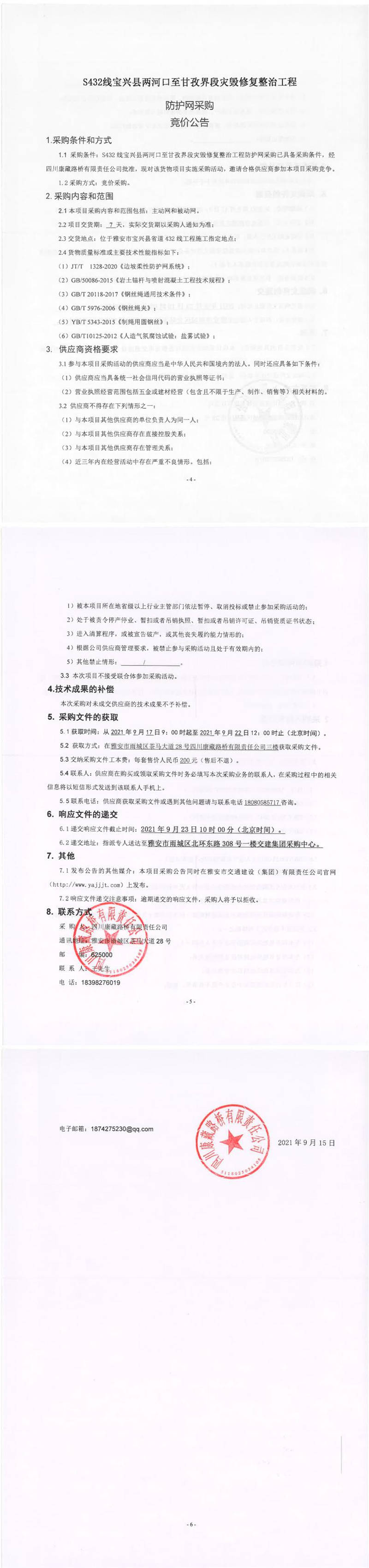 四川康藏路橋有限責任公司S432線寶興縣兩河口至甘孜界段災(zāi)毀修復整治工程防護網(wǎng)采購競價公告