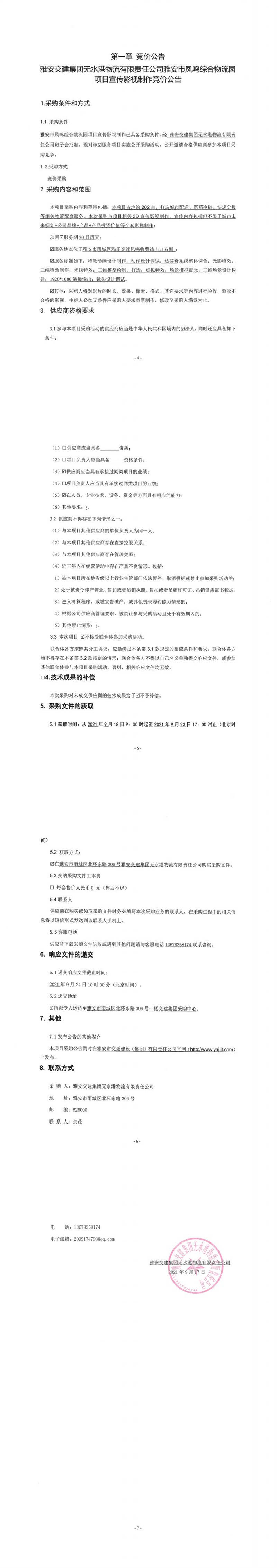 雅安交建集團(tuán)無水港物流有限責(zé)任公司雅安市鳳鳴綜合物流園項目宣傳影視制作競價公告
