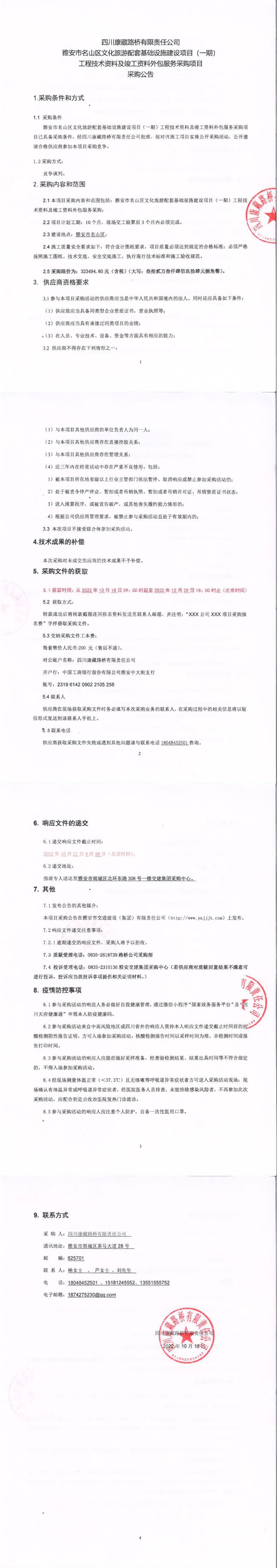 四川康藏路橋有限責任公司雅安市名山區(qū)文化旅游配套基礎(chǔ)設(shè)施建設(shè)項目(一期)工程技術(shù)資料及竣工資料外包服務采購項目采購公告