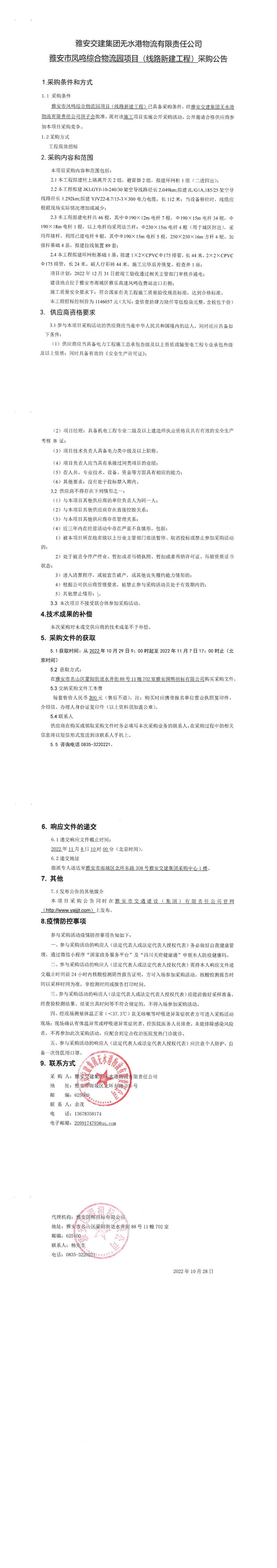 雅安交建集團無水港物流有限責任公司雅安市鳳鳴綜合物流園項目(線路新建工程)采購公告