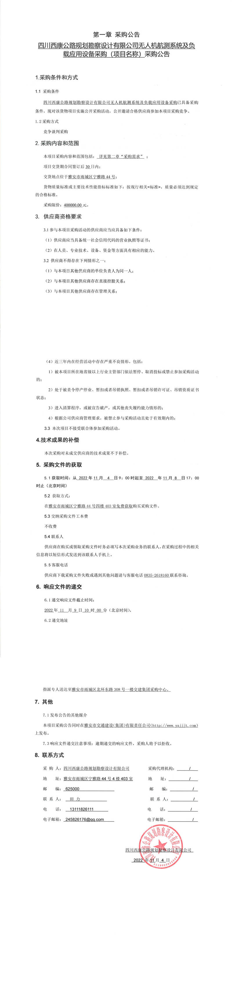 四川西康公路規(guī)劃勘察設(shè)計(jì)有限公司無(wú)人機(jī)航測(cè)系統(tǒng)及負(fù)載應(yīng)用設(shè)備采購(gòu)(項(xiàng)目名稱)采購(gòu)公告