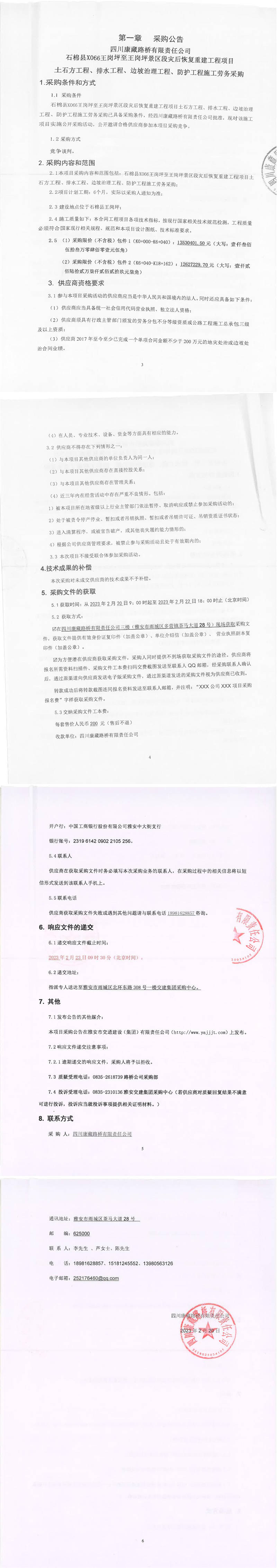 四川康藏路橋有限責任公司石棉縣X066王崗坪至王崗坪景區(qū)段災后恢復重建工程項目土石方工程、排水工程、邊坡治理工程、防護工程施工勞務(wù)采購公告