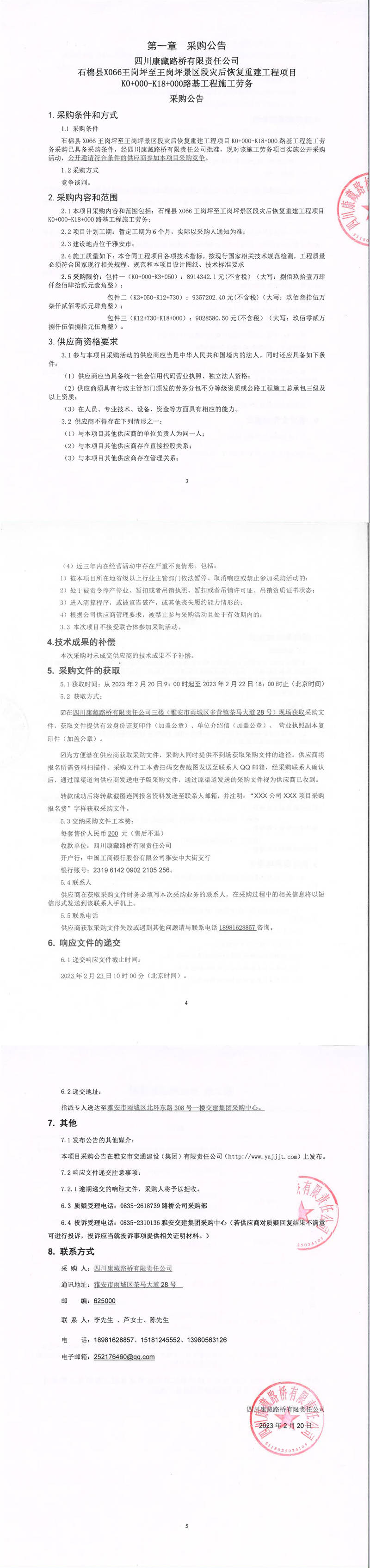 四川康藏路橋有限責(zé)任公司石棉縣X066王崗坪至王崗坪景區(qū)段災(zāi)后恢復(fù)重建工程項(xiàng)目土石方工程、排水工程、邊坡治理工程、防護(hù)工程施工勞務(wù)采購(gòu)公告