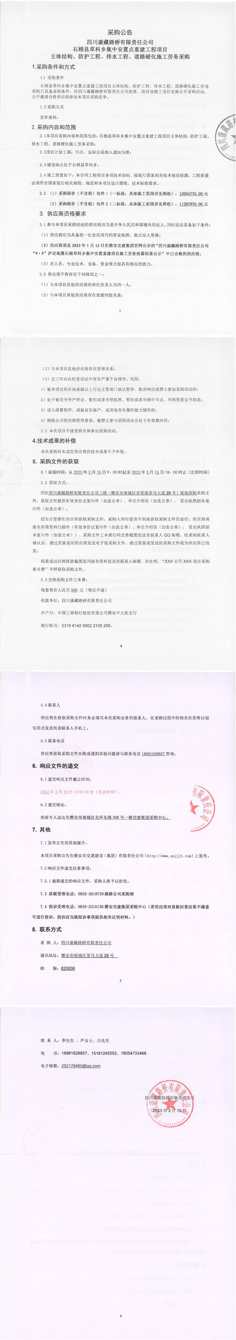 四川康藏路橋有限責任公司石棉縣草科鄉(xiāng)集中安置點重建工程項目主體結(jié)構(gòu)、防護工程、排水工程、道路硬化施工采購公告