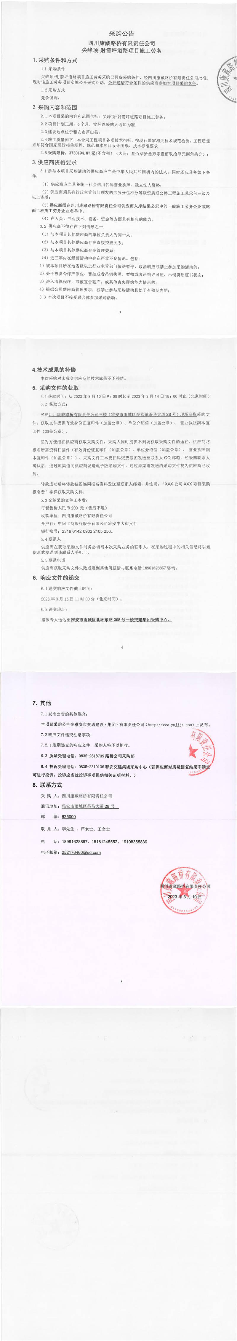 四川康藏路橋有限責(zé)任公司尖峰頂-射箭坪道路項(xiàng)目施工勞務(wù)采購公告