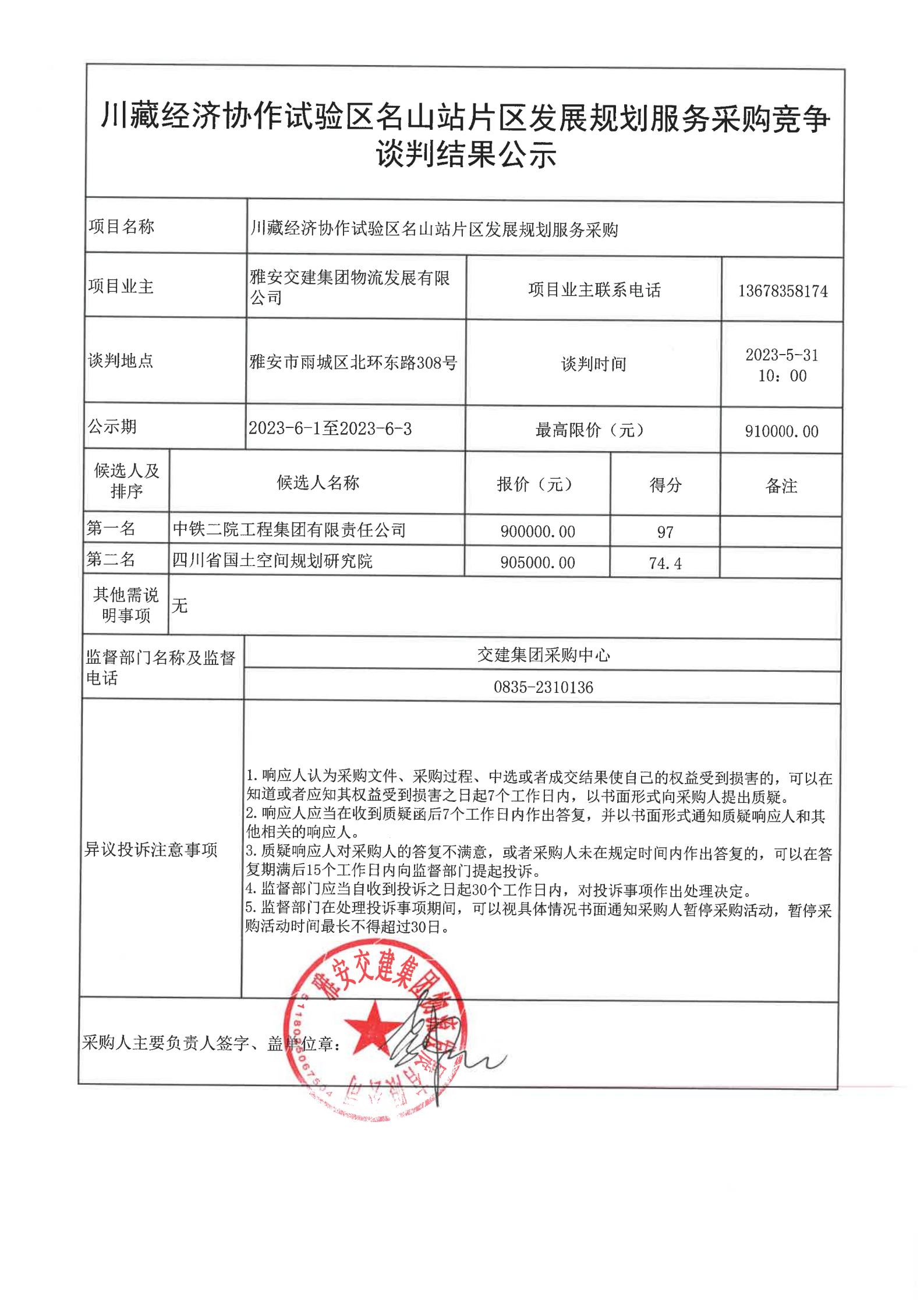 雅安交建集團(tuán)物流發(fā)展有限公司川藏經(jīng)濟(jì)協(xié)作試驗(yàn)區(qū)名山站片區(qū)發(fā)展規(guī)劃編制服務(wù)采購競爭談判結(jié)果公示