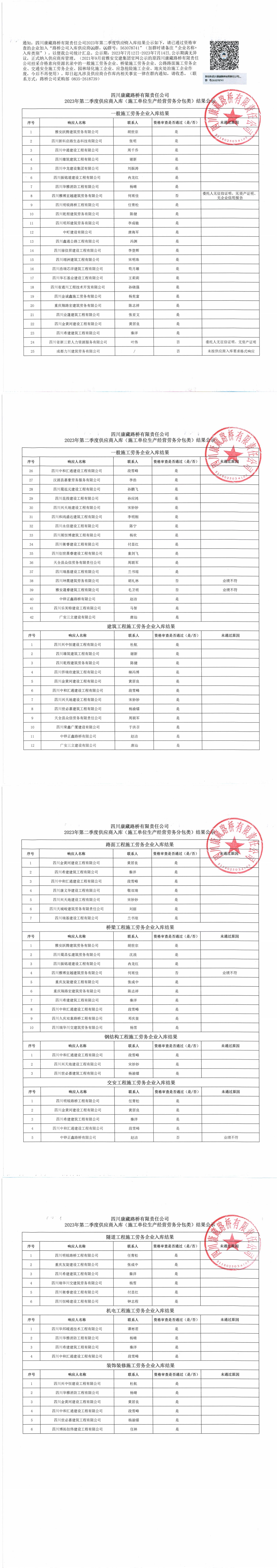 四川康藏路橋有限責(zé)任公司2023年第二季度供應(yīng)商入庫(施工單位生產(chǎn)經(jīng)營(yíng)勞務(wù)分包類)結(jié)果公示