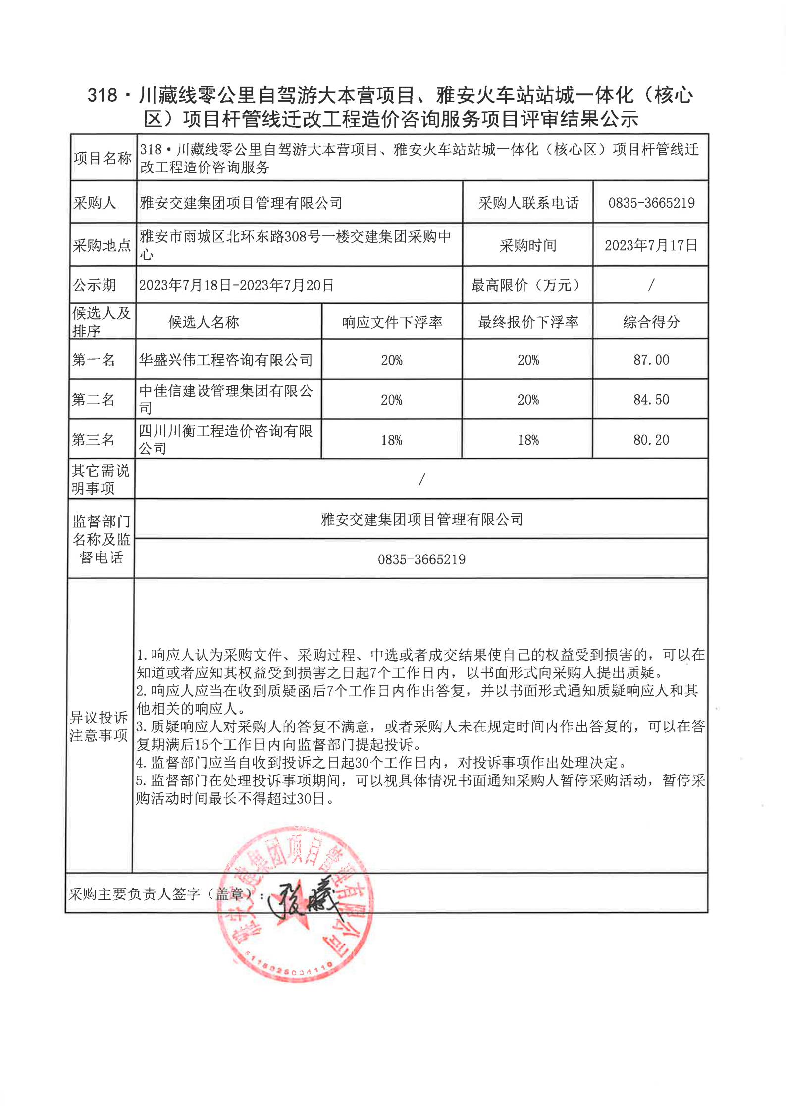 雅安交建集團(tuán)項(xiàng)目管理有限公司318·川藏公路零公里自駕游大本營(yíng)項(xiàng)目、雅安火車站站城一體化(核心區(qū))項(xiàng)目桿管線遷改工程造價(jià)咨詢服務(wù)項(xiàng)目評(píng)審結(jié)果公示