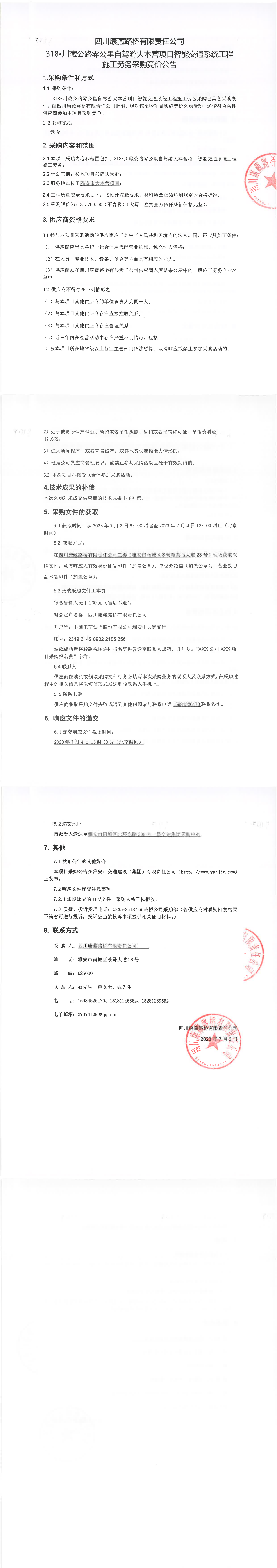 四川康藏路橋有限責(zé)任公司318·川藏公路零公里自駕游大本營項(xiàng)目智能交通系統(tǒng)工程施工勞務(wù)采購公告