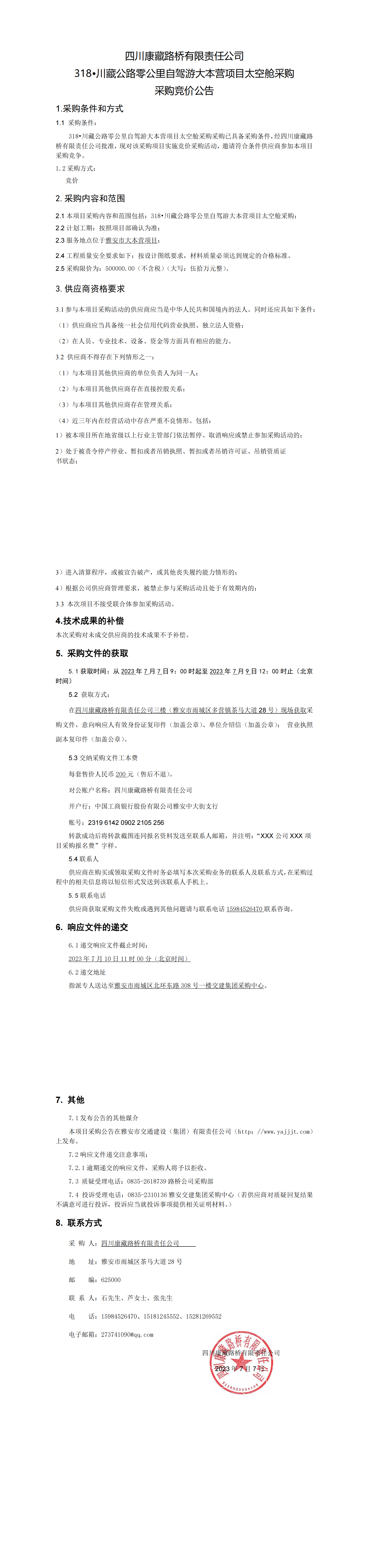 四川康藏路橋有限責(zé)任公司318·川藏公路零公里自駕游大本營項(xiàng)目太空艙采購競(jìng)價(jià)公告