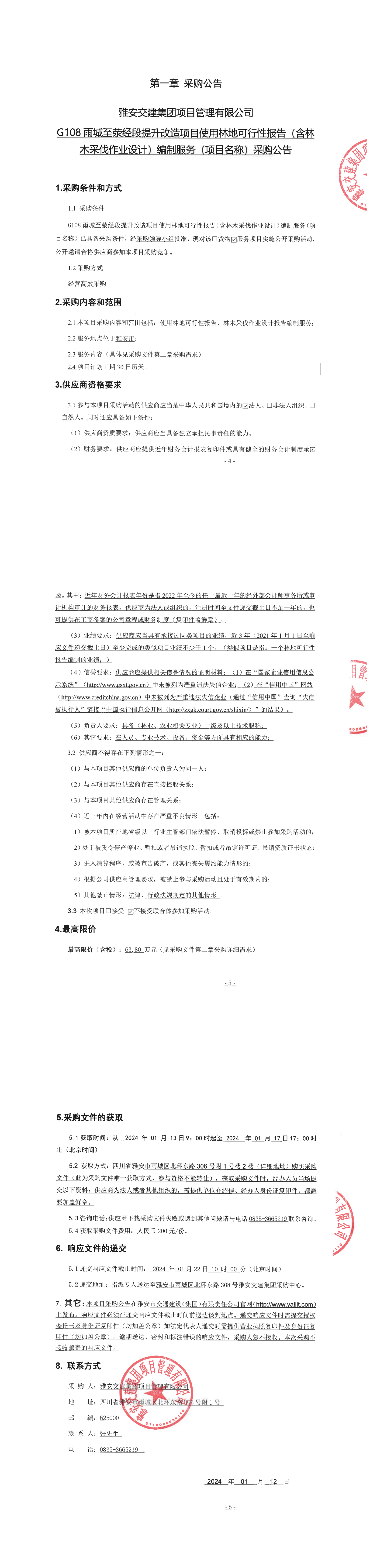 雅安交建集團(tuán)項(xiàng)目管理有限公司G108雨城至滎經(jīng)段提升改造項(xiàng)目使用林地可行性報告(含林木采伐作業(yè)設(shè)計)編制服務(wù)(項(xiàng)目名稱)采購公告