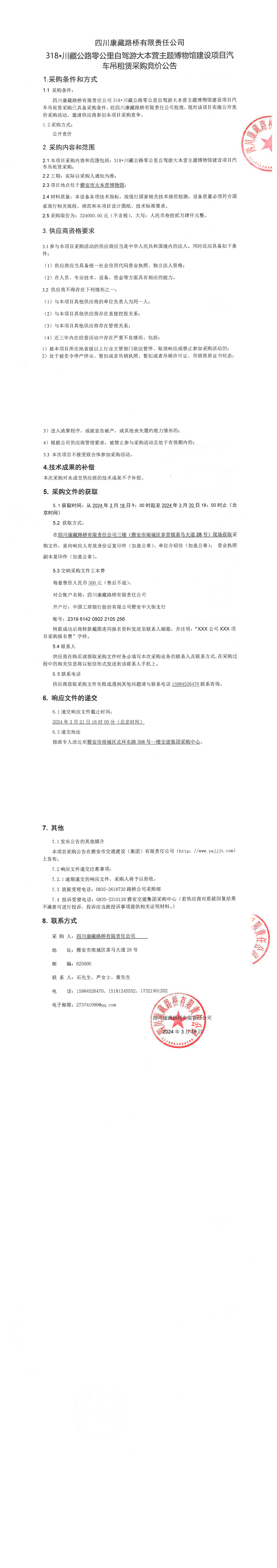 四川康藏路橋有限責(zé)任公司318•川藏公路零公里自駕游大本營主題博物館建設(shè)項目汽車吊租賃采購競價公告