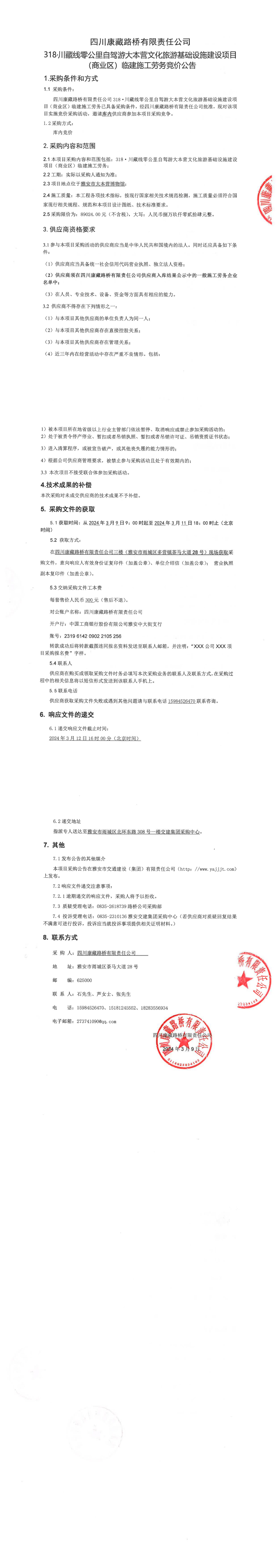 四川康藏路橋有限責(zé)任公司318·川藏線零公里自駕游大本營文化旅游基礎(chǔ)設(shè)施建設(shè)項(xiàng)目(商業(yè)區(qū))臨建施工勞務(wù)采購公告