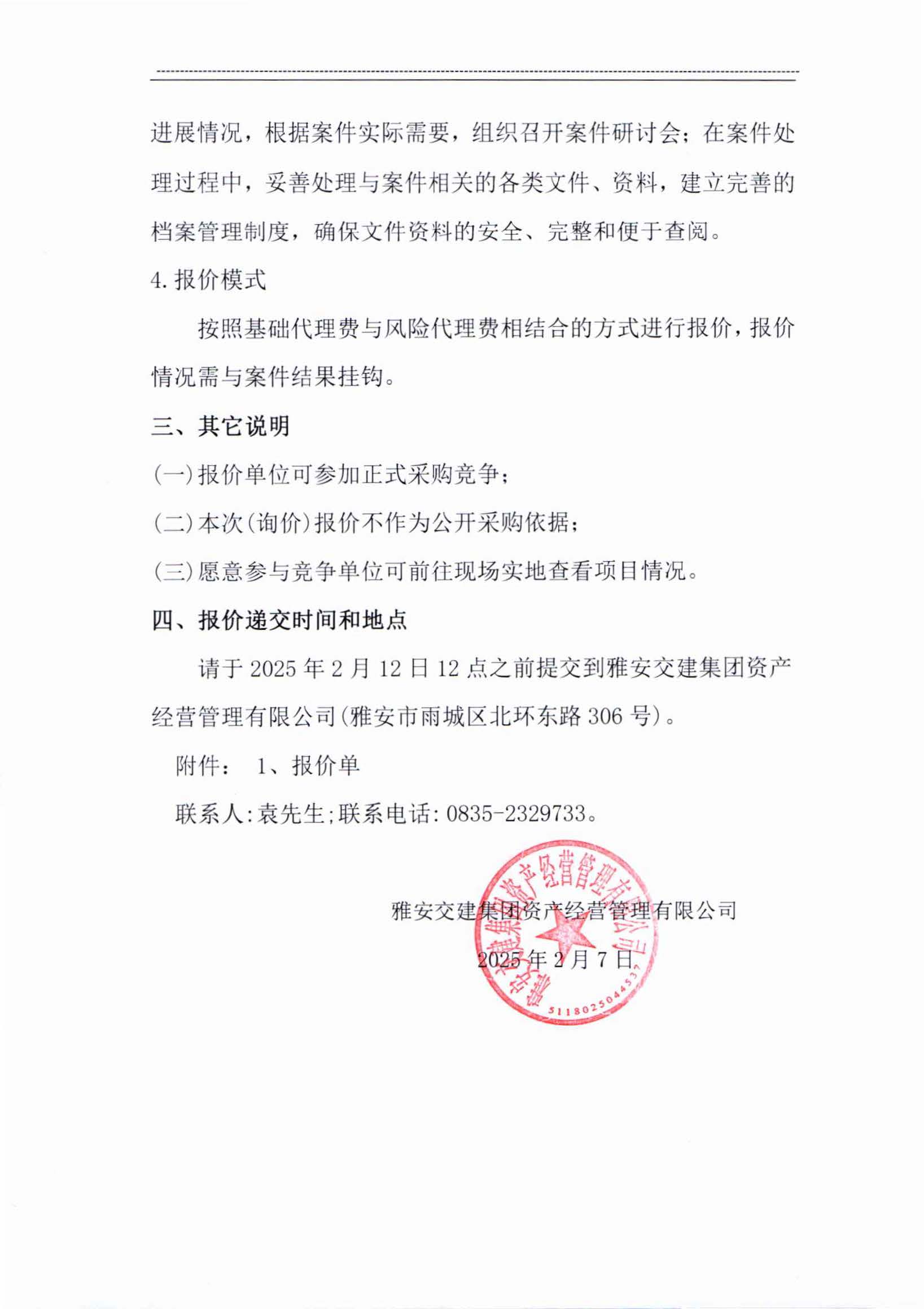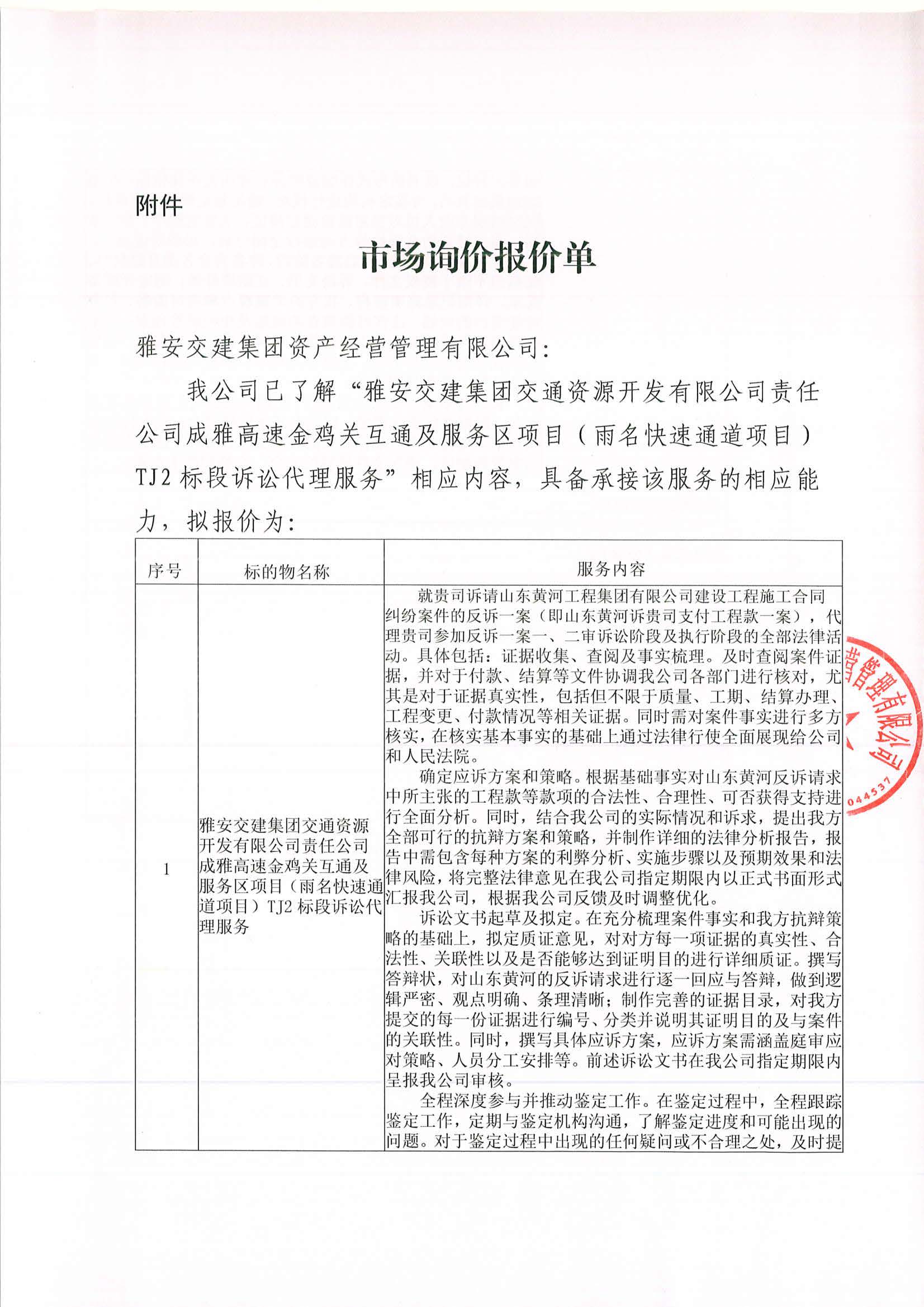 雅安交建集團資產(chǎn)經(jīng)營管理有限公司成雅高速金雞關互通及服務區(qū)項目(雨名快速通道項目)TJ2標段訴訟代理服務項目市場調(diào)查公告