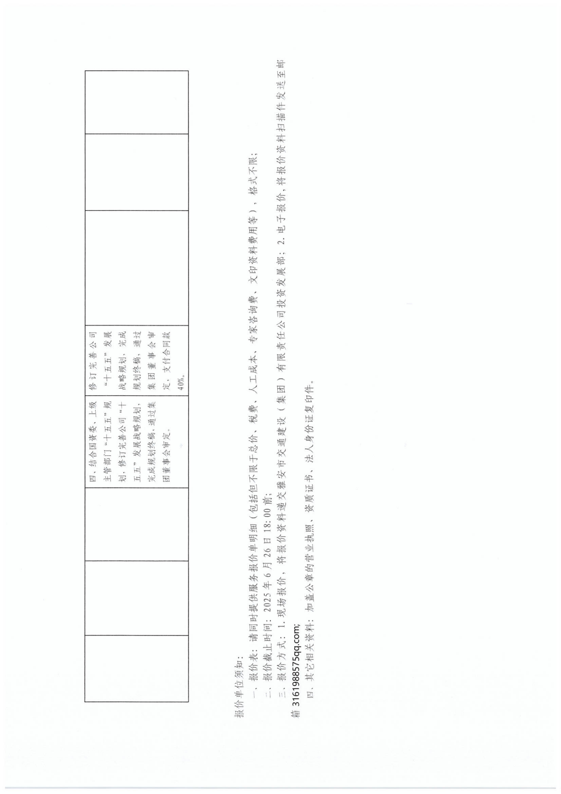關(guān)于采購(gòu)雅安市交通建設(shè)(集團(tuán))有限責(zé)任公司“十五五”發(fā)展戰(zhàn)略規(guī)劃服務(wù)單位的詢價(jià)