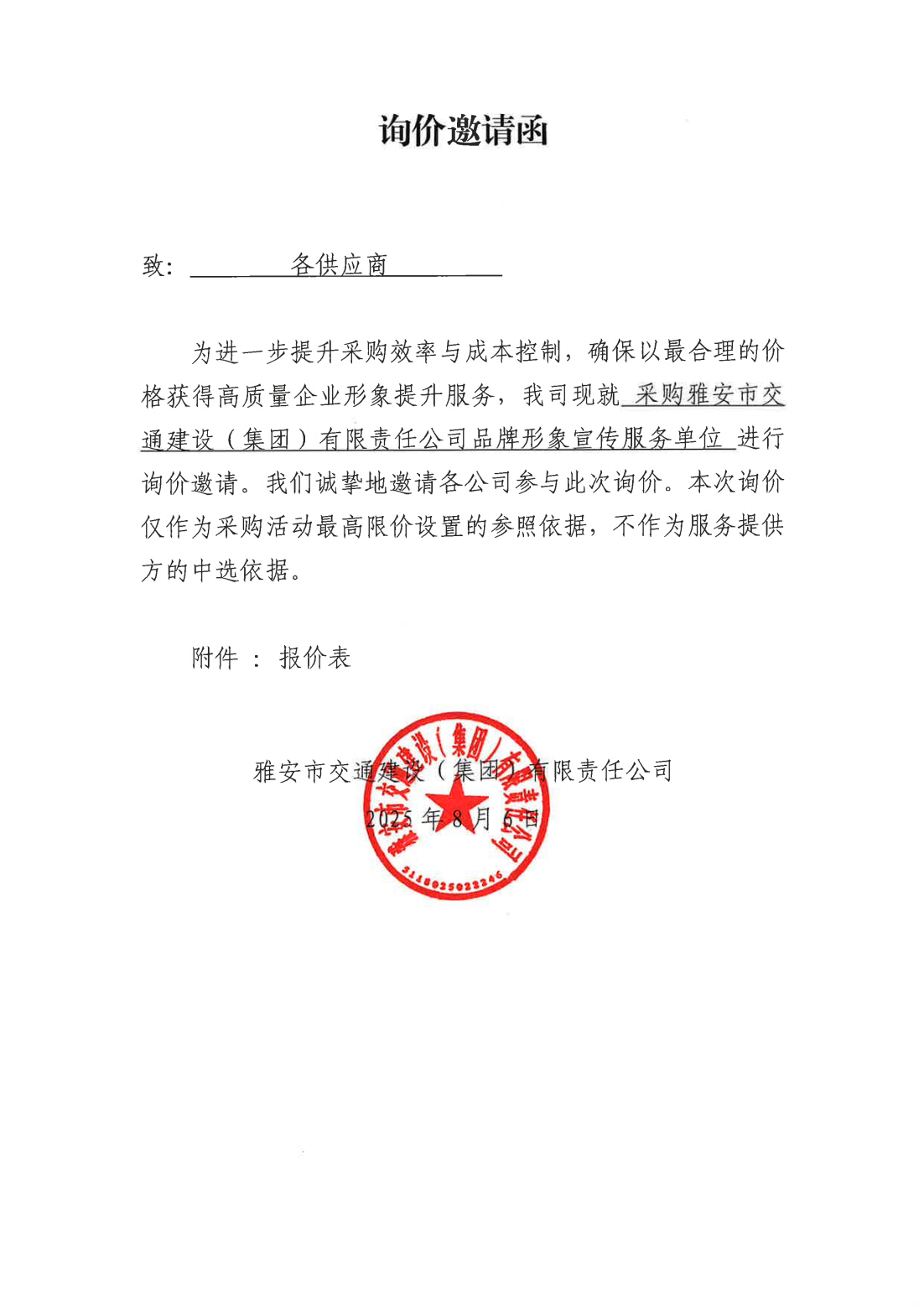 關(guān)于采購(gòu)集團(tuán)品牌形象宣傳服務(wù)單位的詢(xún)價(jià)函