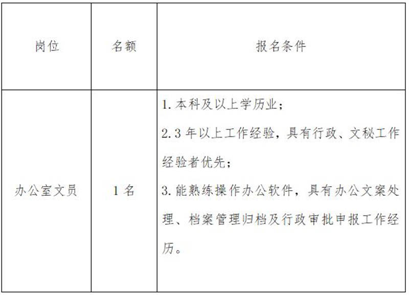 雅安交建集團(tuán)康居建設(shè)工程質(zhì)量與室內(nèi)環(huán)境污染檢測有限公司是雅安市交通建設(shè)(集團(tuán))有限責(zé)任公司下屬子公司,主要從事民用建筑室內(nèi)環(huán)境污染檢測業(yè)務(wù),F(xiàn)根據(jù)公司業(yè)務(wù)發(fā)展需要,擬向社會公開招聘1名辦公室文員,現(xiàn)將有關(guān)事項(xiàng)公告如下: