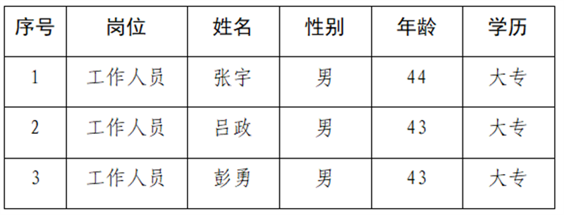 經雅安交建集團云石建材有限公司研究,對以下3名擬聘用人員予以公示: