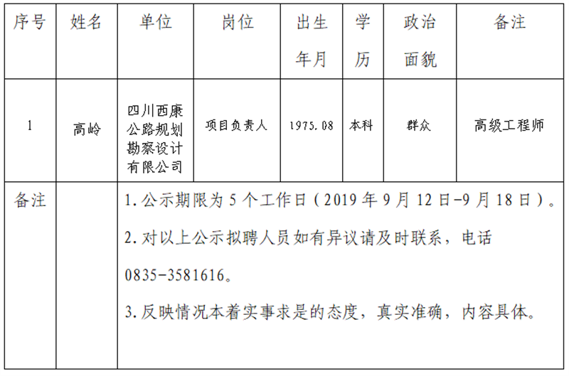 雅安交建集團(tuán)子公司擬聘用人員公示 (勘察設(shè)計(jì)公司)