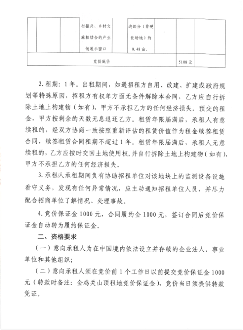 金雞關(guān)山頂觀景平臺競價招租公告