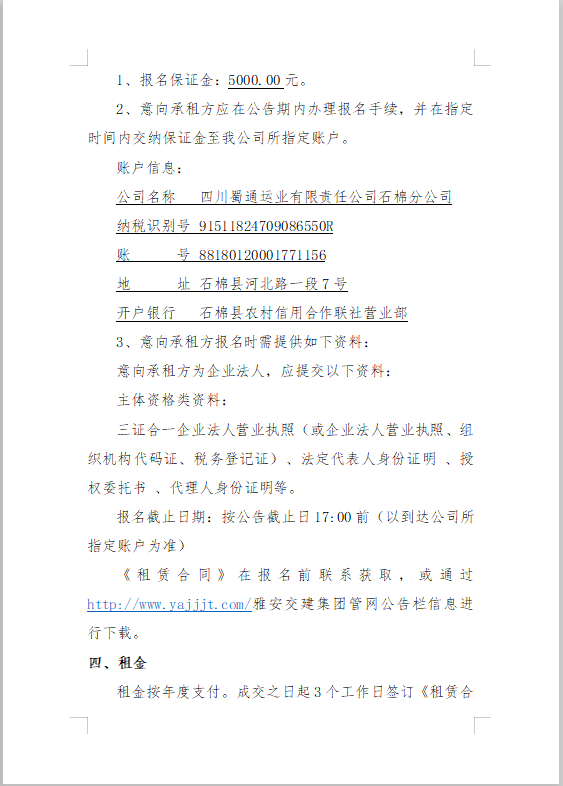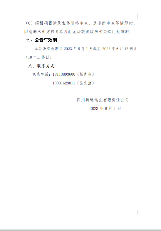 蜀通運業(yè)有限責(zé)任公司關(guān)于閑置資產(chǎn)公開招租的公告