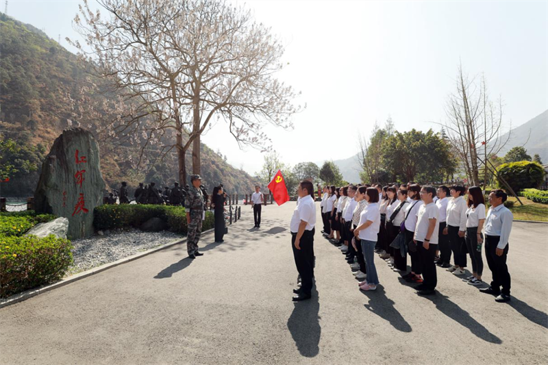 紀(jì)念館內(nèi),大家駐足凝視著一幅幅感人至深的圖片和一件件彌足珍貴的文物,細(xì)細(xì)端詳,認(rèn)真傾聽著革命先輩的長(zhǎng)征故事,不時(shí)凝神思考,追憶黨的光輝歷史,感悟長(zhǎng)征精神的時(shí)代偉力。